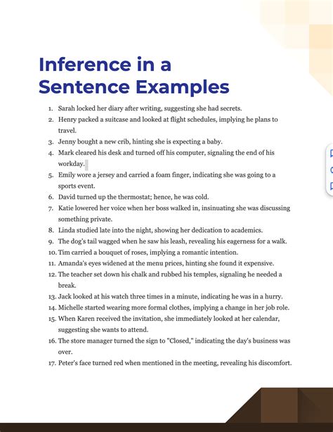 Explore a clear, practical sample of inference to understand how to draw logical conclusions from evidence. This guide breaks down deductive and inductive reasoning, providing step-by-step examples of analytical thinking, critical interpretation, and data-driven insights. Enhance your decision-making skills by mastering the art of making accurate inferences in both academic and everyday contexts today.